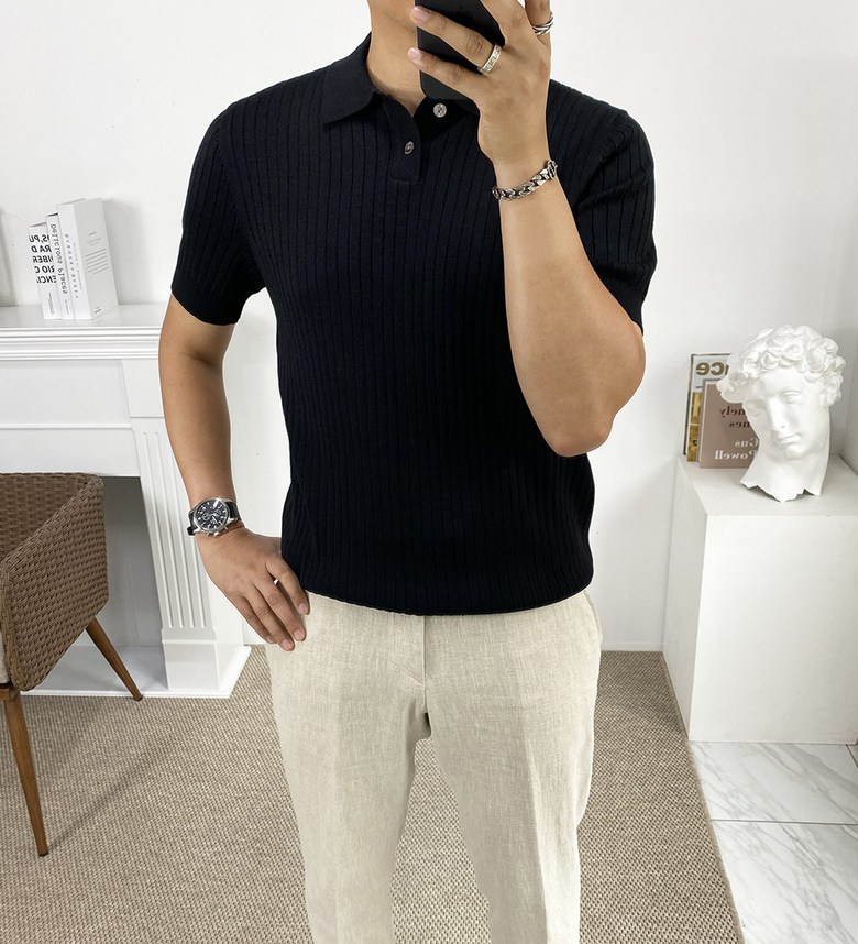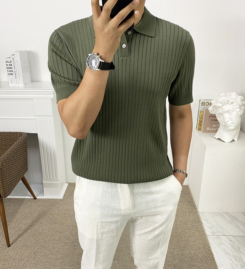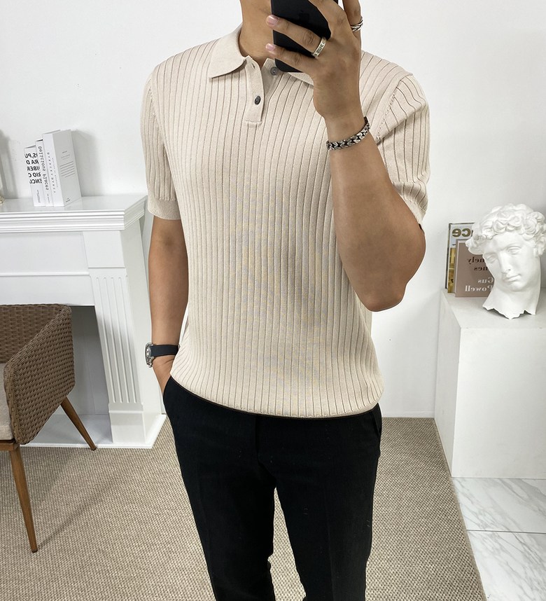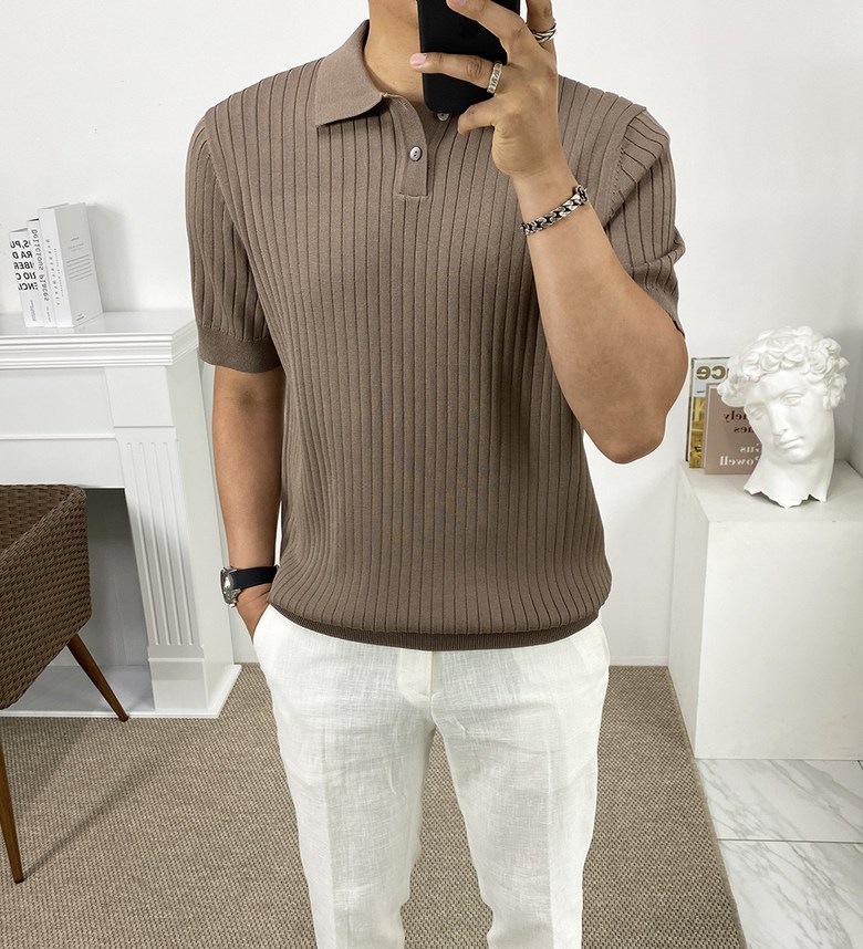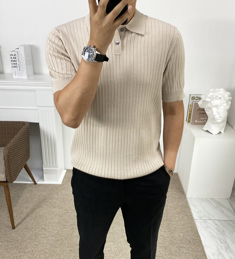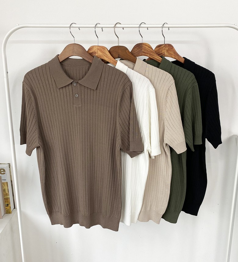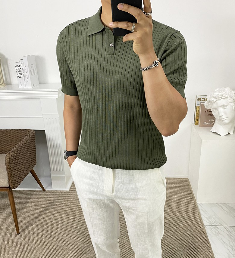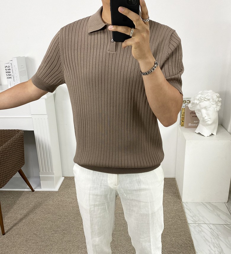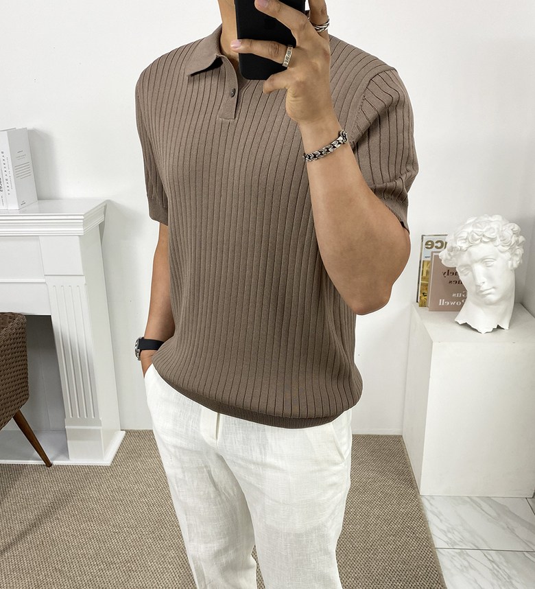 남자 여름 퀸트 카라 반팔 니트 티셔츠