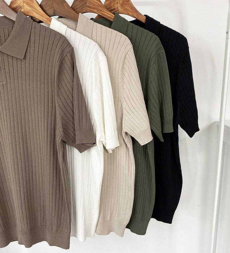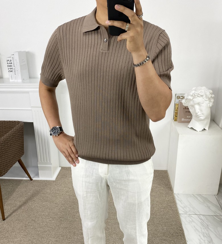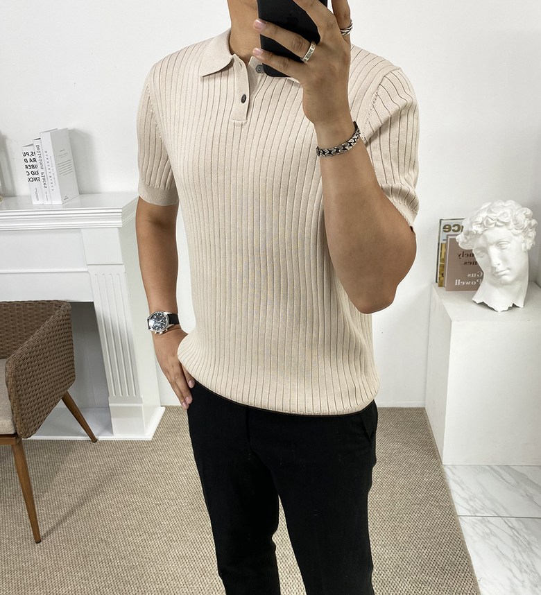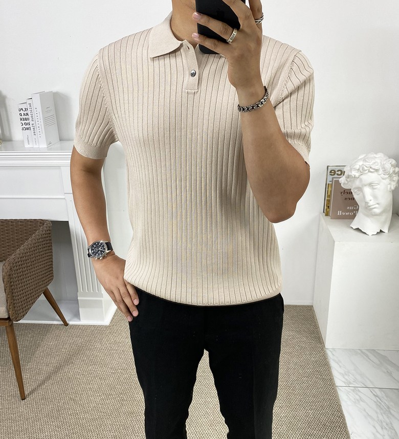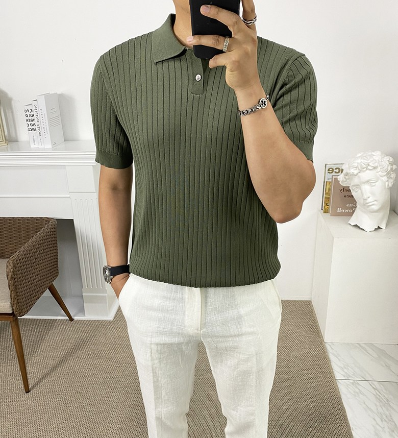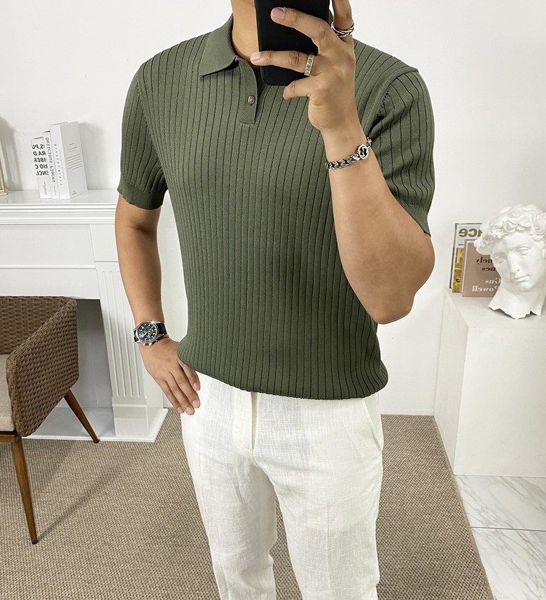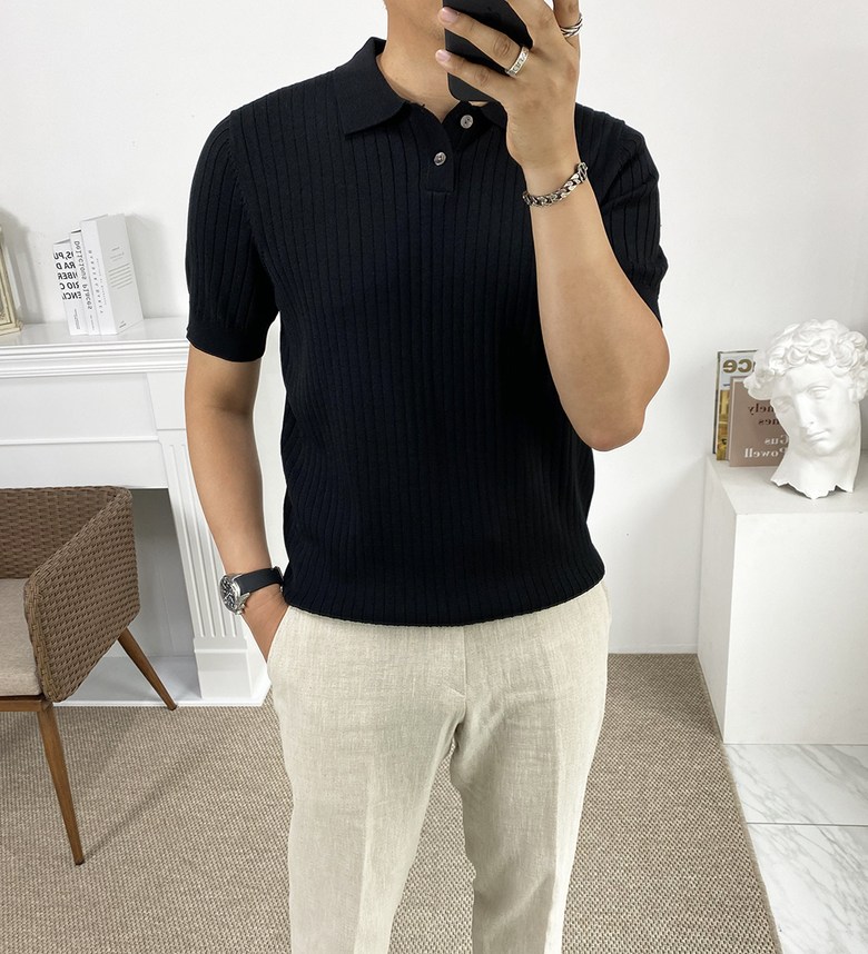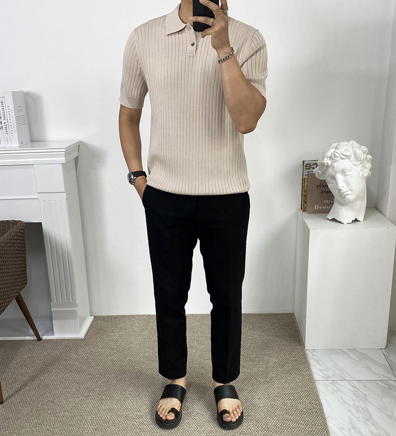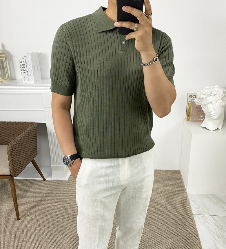 남자 여름 퀸트 카라 반팔 니트 티셔츠