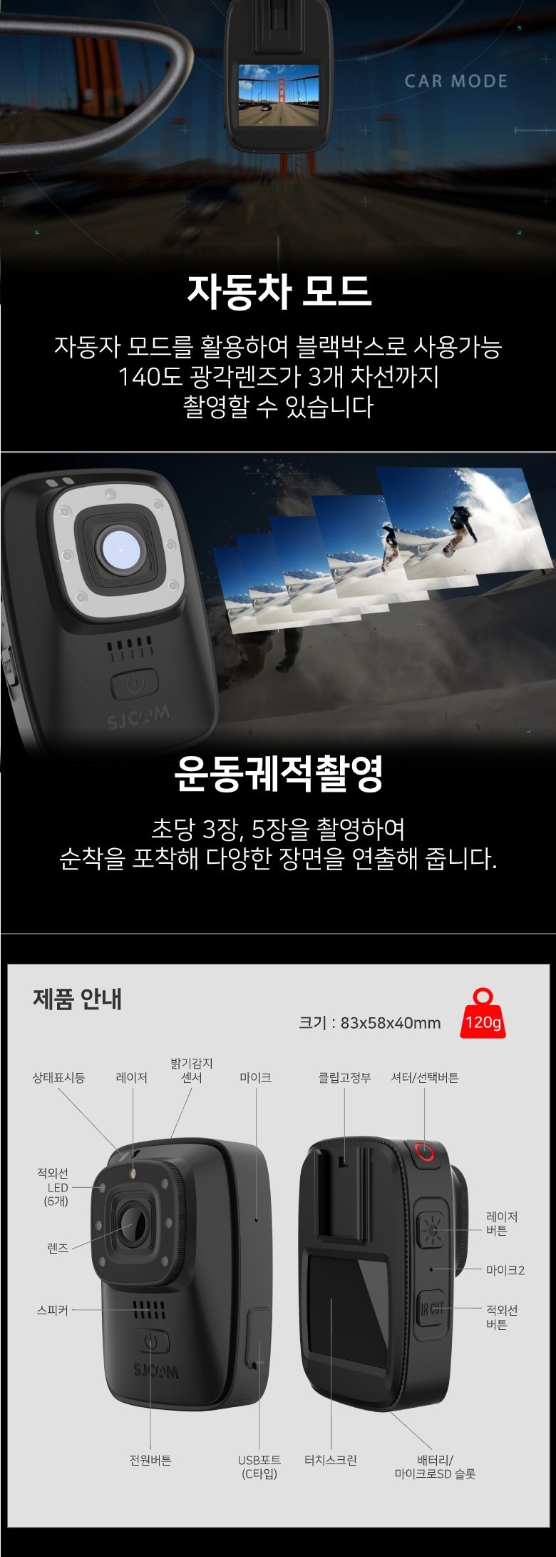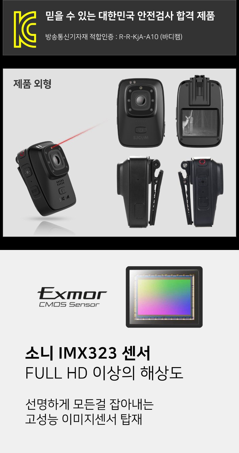 | 품명 및 모델명 | SJCAM 적외선 야간 웨어러블 바디캠 A10 KR non-WIFI / A10 | KC 인증정보 | R-R-KjA-A10, ZU101356-21001 |