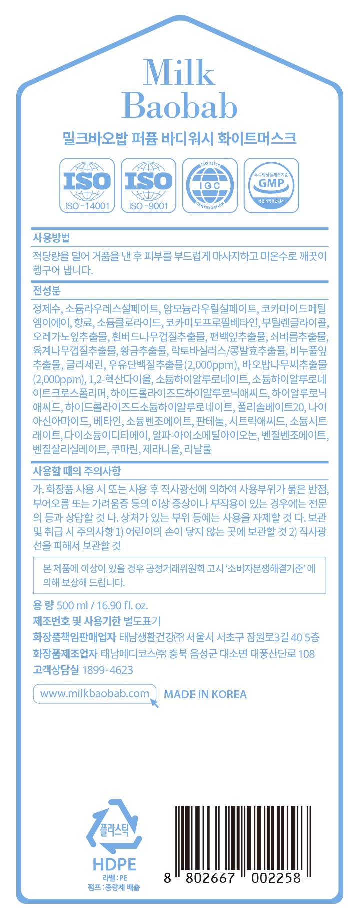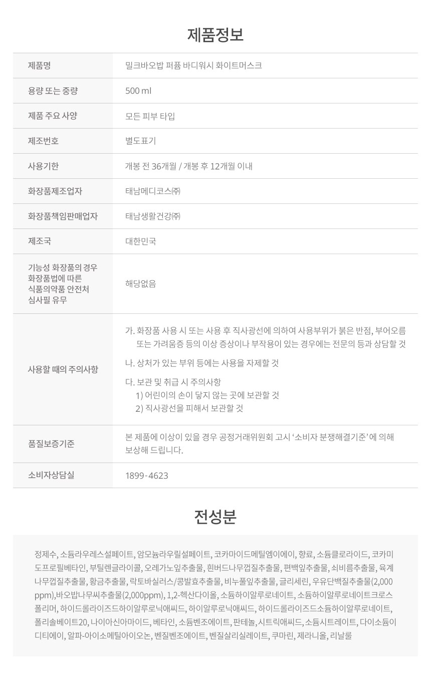 | 용량(중량) | 500ml | 제품 주요 사양 | 모든 피부용 |