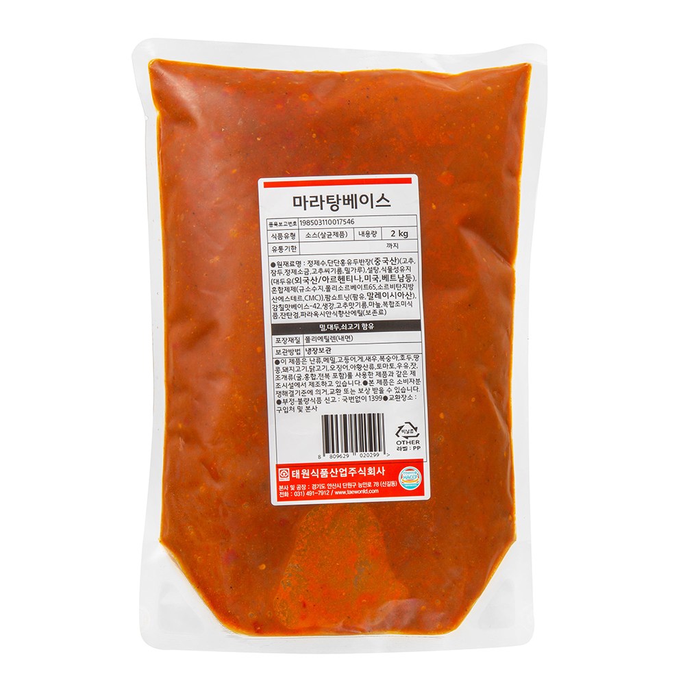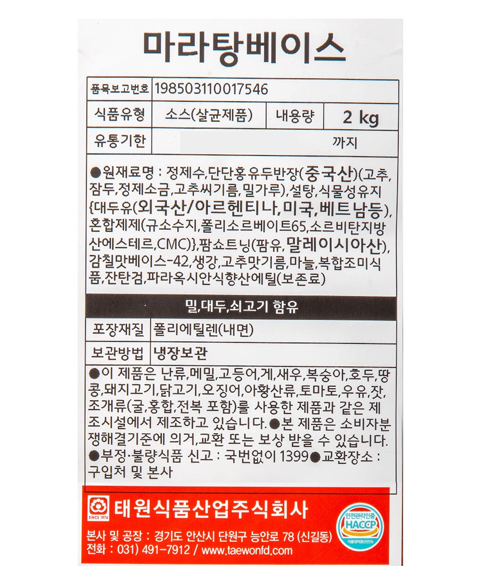 | 제품명 | 마라탕베이스 | 식품의 유형 | 소스(살균제품) |