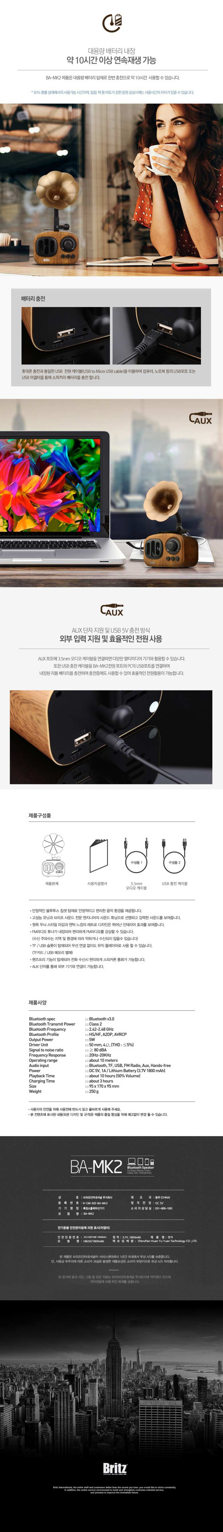 | 품명 및 모델명 | 브리츠 블루투스 스피커 , BA-MK2 | KC 인증정보 | 본품 : R-CMI-BZI-BA-MK2 / 전지 : XU100748-16004A |