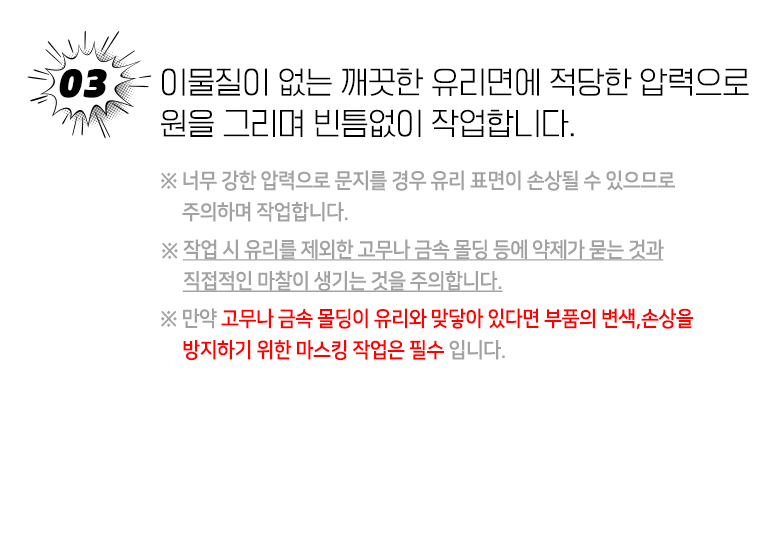 - 표면 권장 사항: 유리