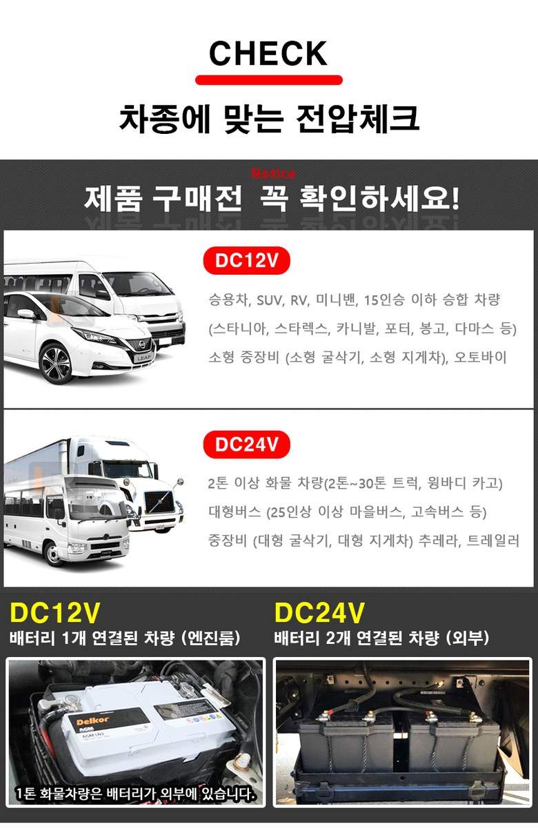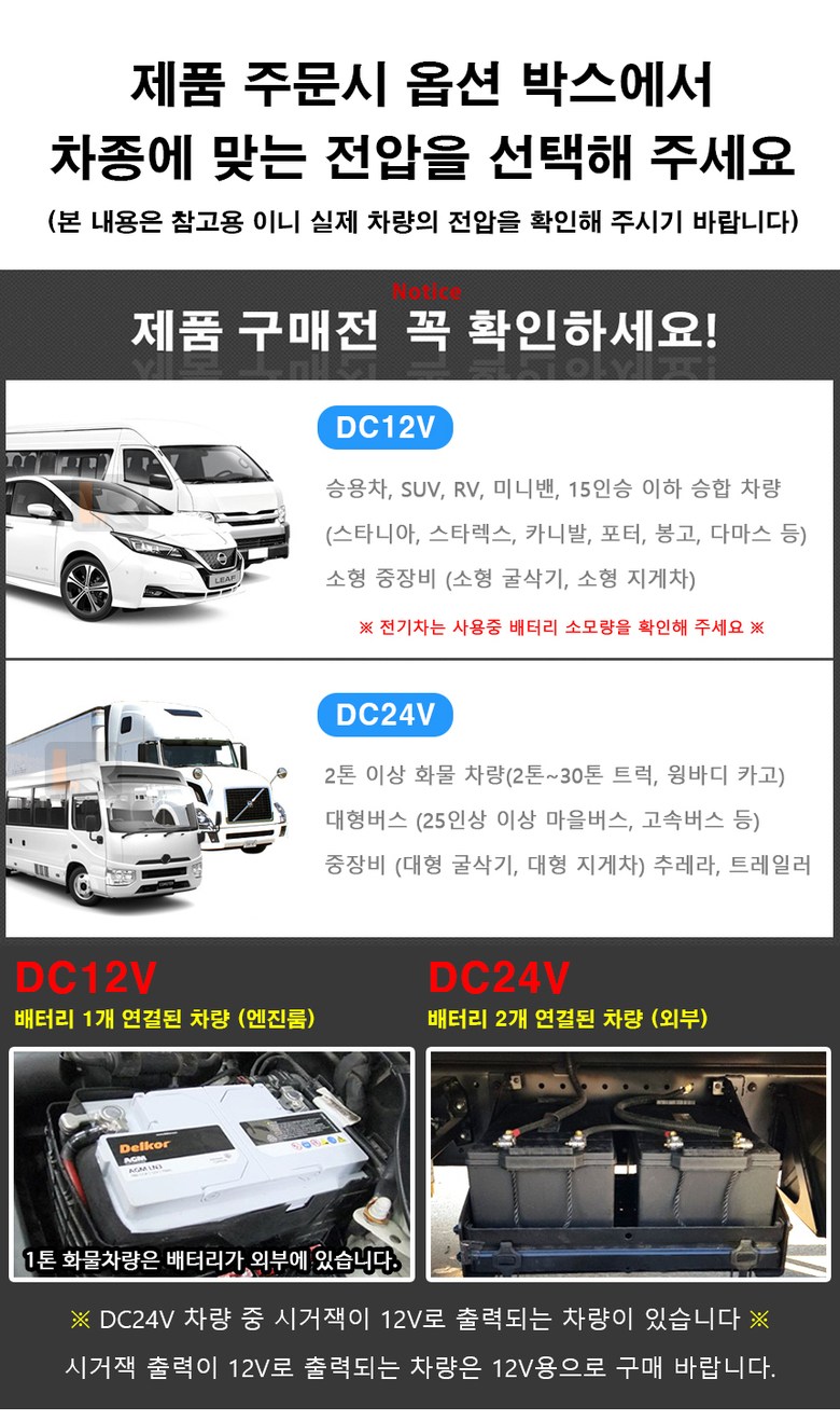 반드시 차종의 맞는 전압을 선택 바랍니다.