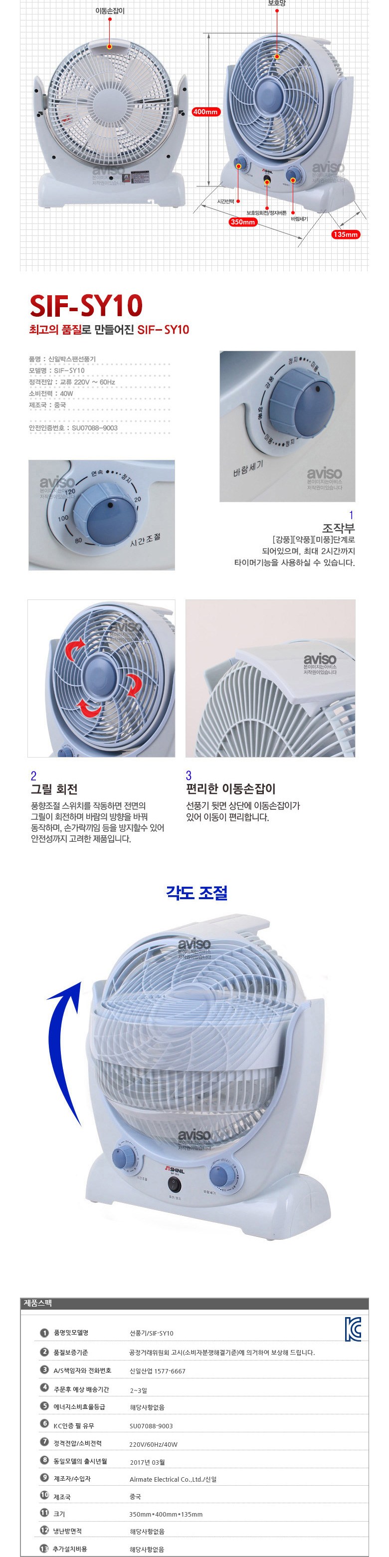 | 품명 및 모델명 | 선풍기 SIF-SY10 | KC 인증정보 | 전기용품 및 생활용품 안전관리법에 따른 KC인증 대상 |