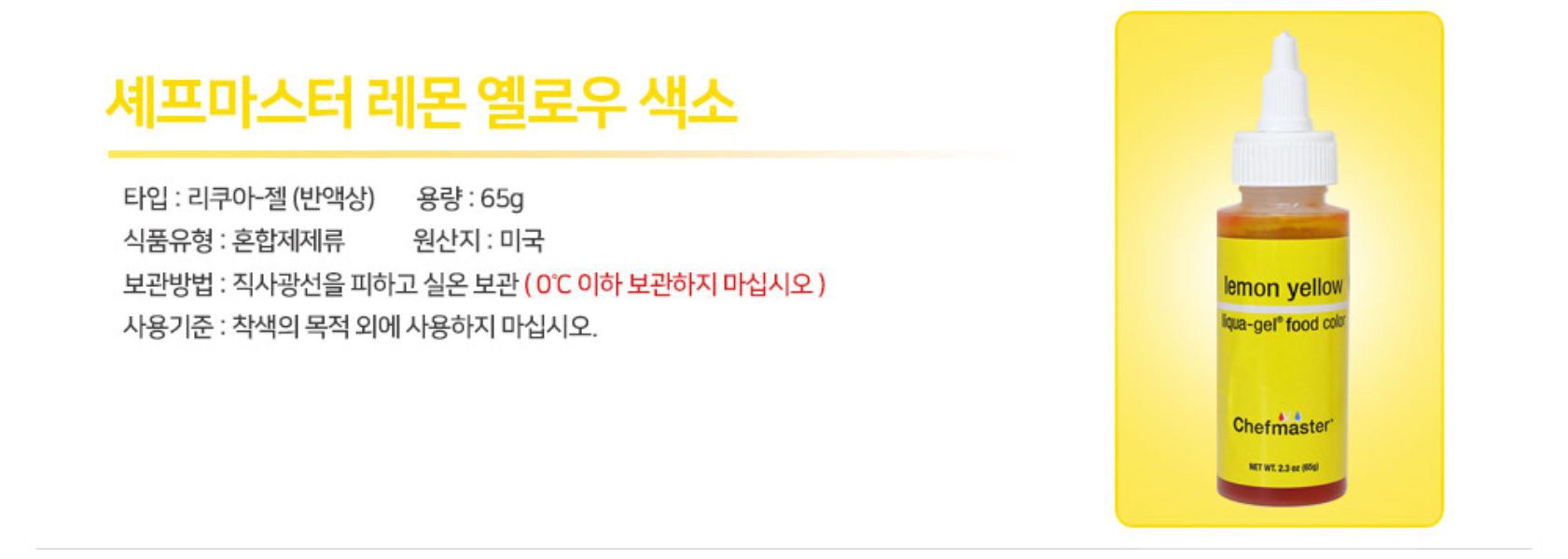 | 제품명 | 셰프마스터 레몬옐로우 색소 | 식품의 유형 | 컨텐츠참조 |