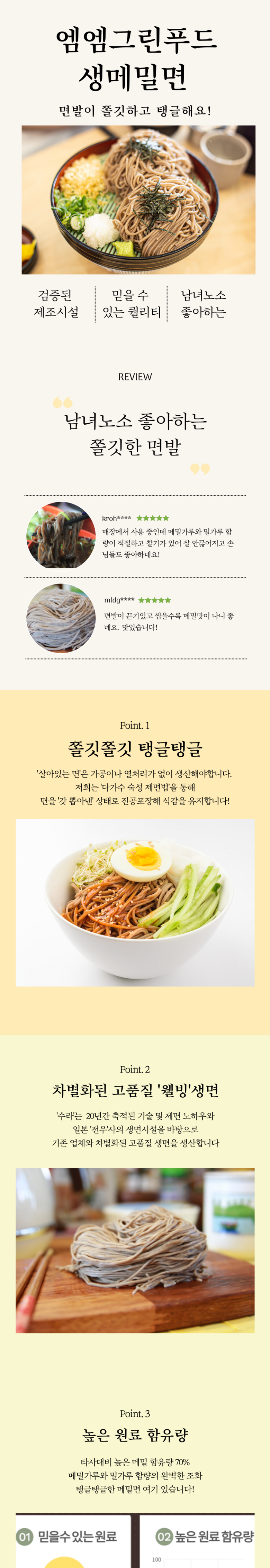 | 제품명 | 생메밀면 | 식품의 유형 | 생면 |