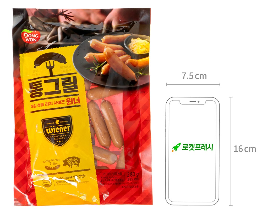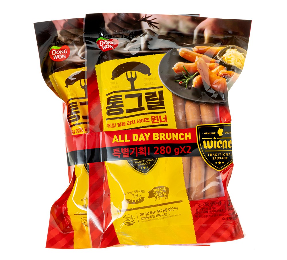 돼지고기의 구수한 육향이 느껴지는 통그릴 윈너예요. 두툼하고 기다란 소시지를 한입 베어 물면, 톡톡 터지는 식감에 입안이 즐겁죠. 끓는 물에 데쳐 부드럽게 즐겨도 좋고요. 칼집을 촘촘하게 넣고 프라이팬에 구워주면 간단한 술안주로도 잘 어울린답니다.