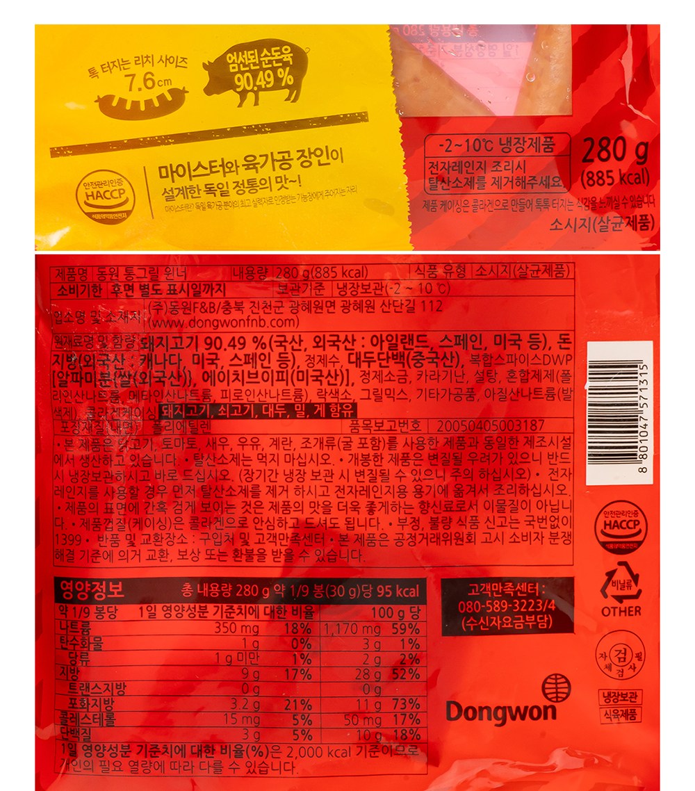 | 포장단위별 내용물의 용량(중량), 수량 | 280g x 2개, 1개 | 원재료명 및 함량 | 컨텐츠 참조 |