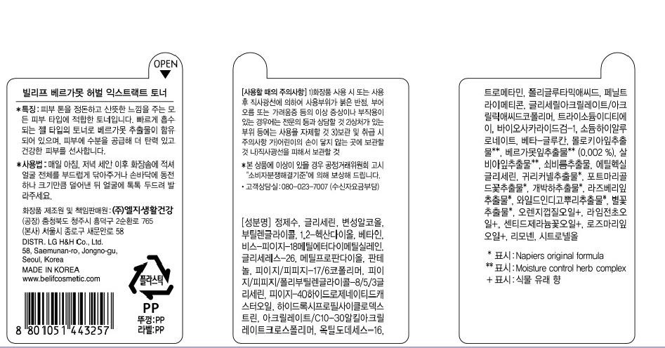 | 화장품제조업자, 화장품책임판매업자 및 맞춤형화장품판매업자 | (주)엘지생활건강/(주)엘지생활건강 | 제조국 | 대한민국 |