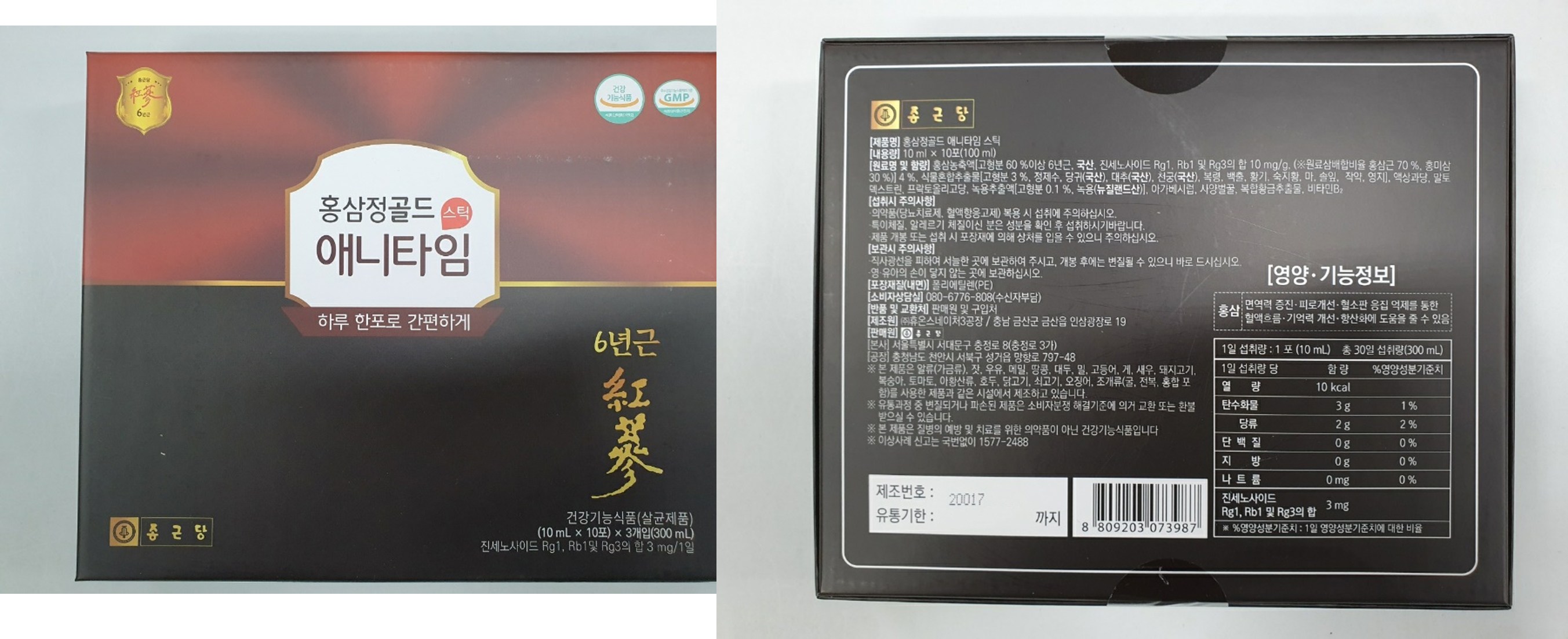 | 제품명 | 홍삼정 애니타임 스틱 | 제조업소의 명칭과 소재지 | 컨텐츠 참조 |