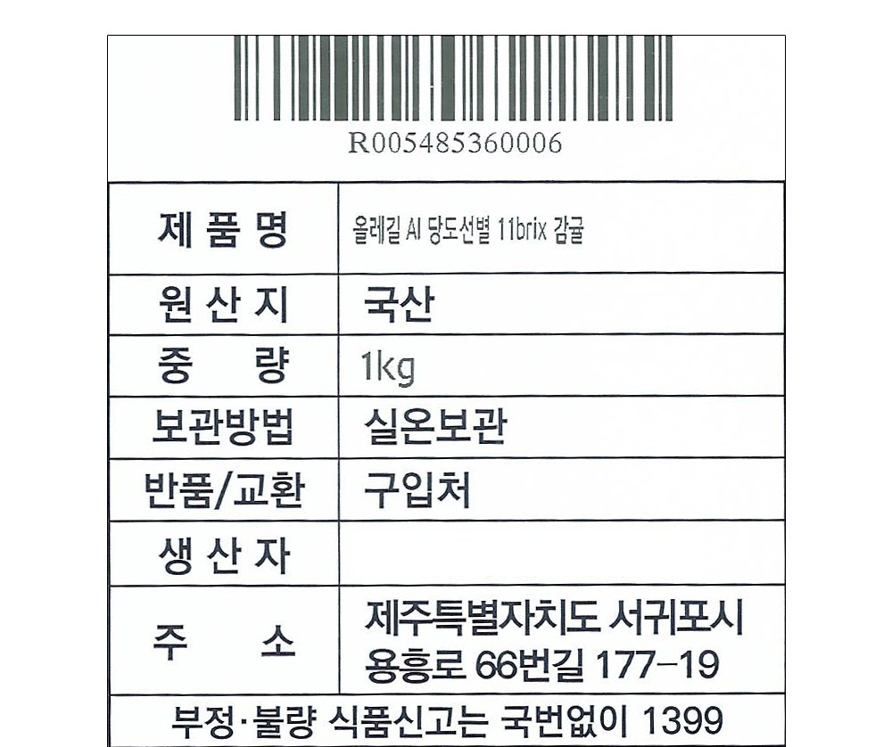 | 제조연월일, 소비기한 또는 품질유지기한 | 업데이트 예정 | 세부 품목군별 표시사항 | 농수산물 : 유전자변형(해당 없음) / 지리적 표시사항(해당 없음) |