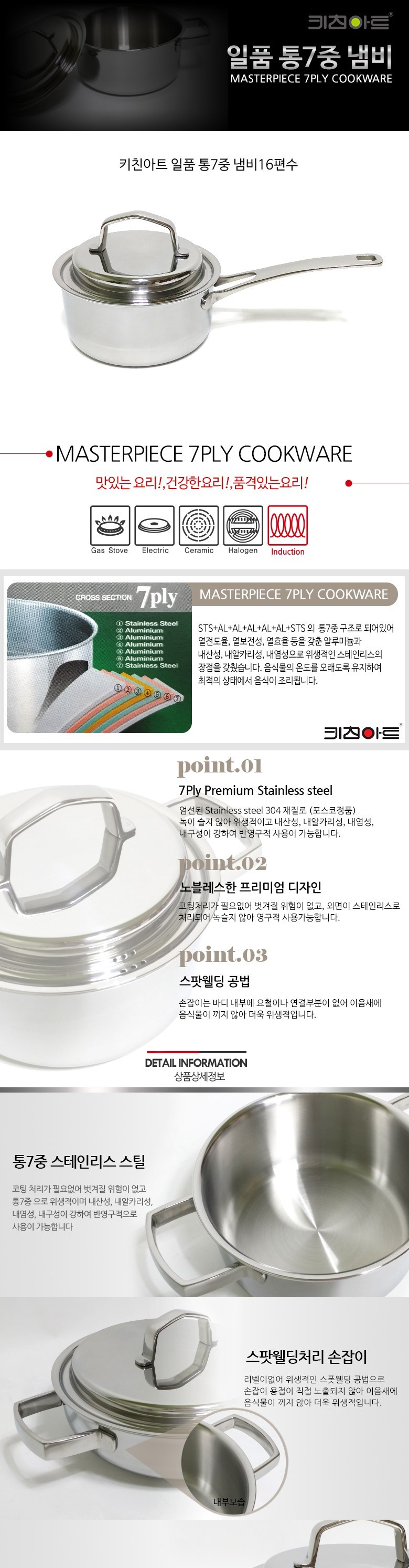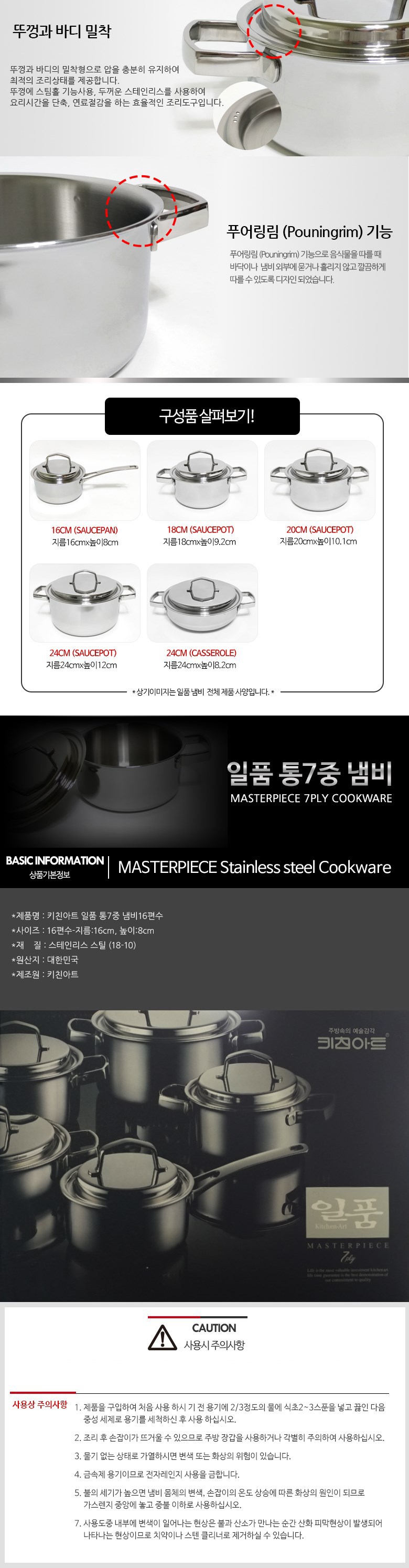 | 품명 및 모델명 | 키친아트 일품 통7중 냄비16편수 | 재질 | 스테인레스 |