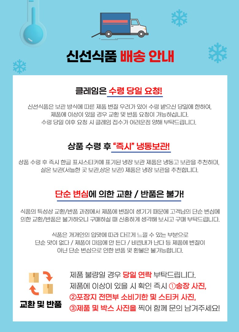 - ㆍ교환/반품에 관한 일반적인 사항은 판매자가 제시사항보다 관계법령이 우선합니다.