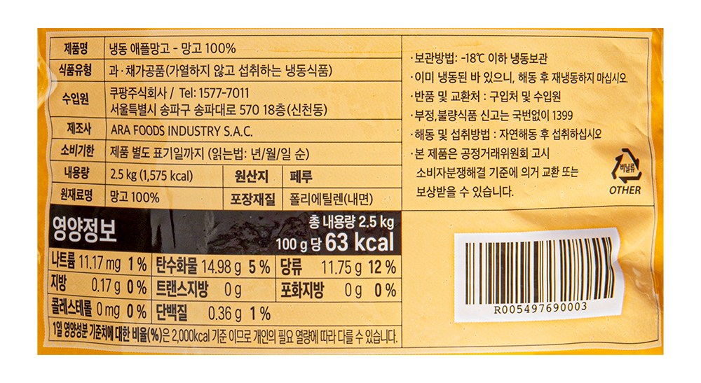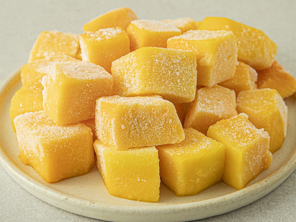 상큼하면서 달콤한 풍미를 진하게 풍기는 애플망고. 먹기 좋은 크기로 깔끔하게 조각낸 냉동 망고를 만나보세요. 입안에서 부드럽게 부서지며 특유의 달콤한 향을 가득 선사하죠. 빙수의 토핑으로 활용해도 좋고, 믹서기에 갈아 주스로 드셔도 좋아요.