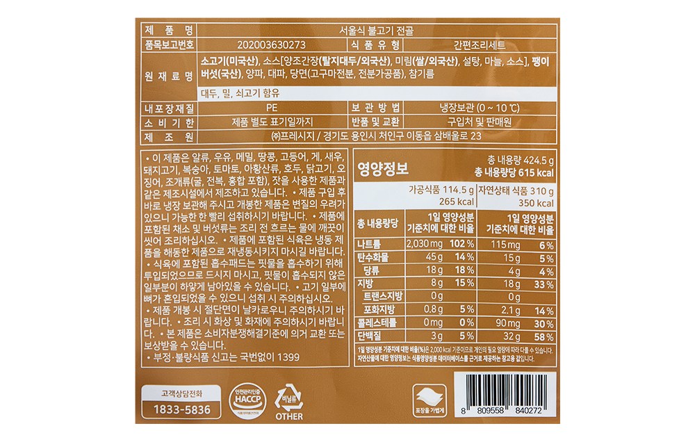 | 제품명 | 서울식 불고기 전골 | 식품의 유형 | 컨텐츠참조 |
