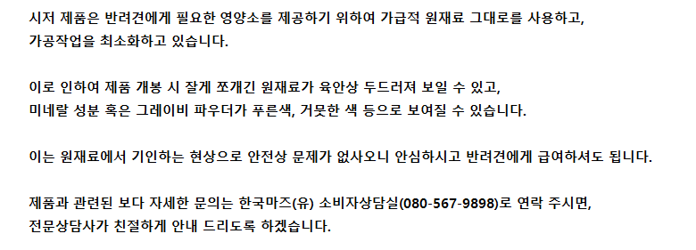 | 품명 및 모델명 | 시저 11세 이상 닭고기 100g | 인증사항 | 해당 없음 |
