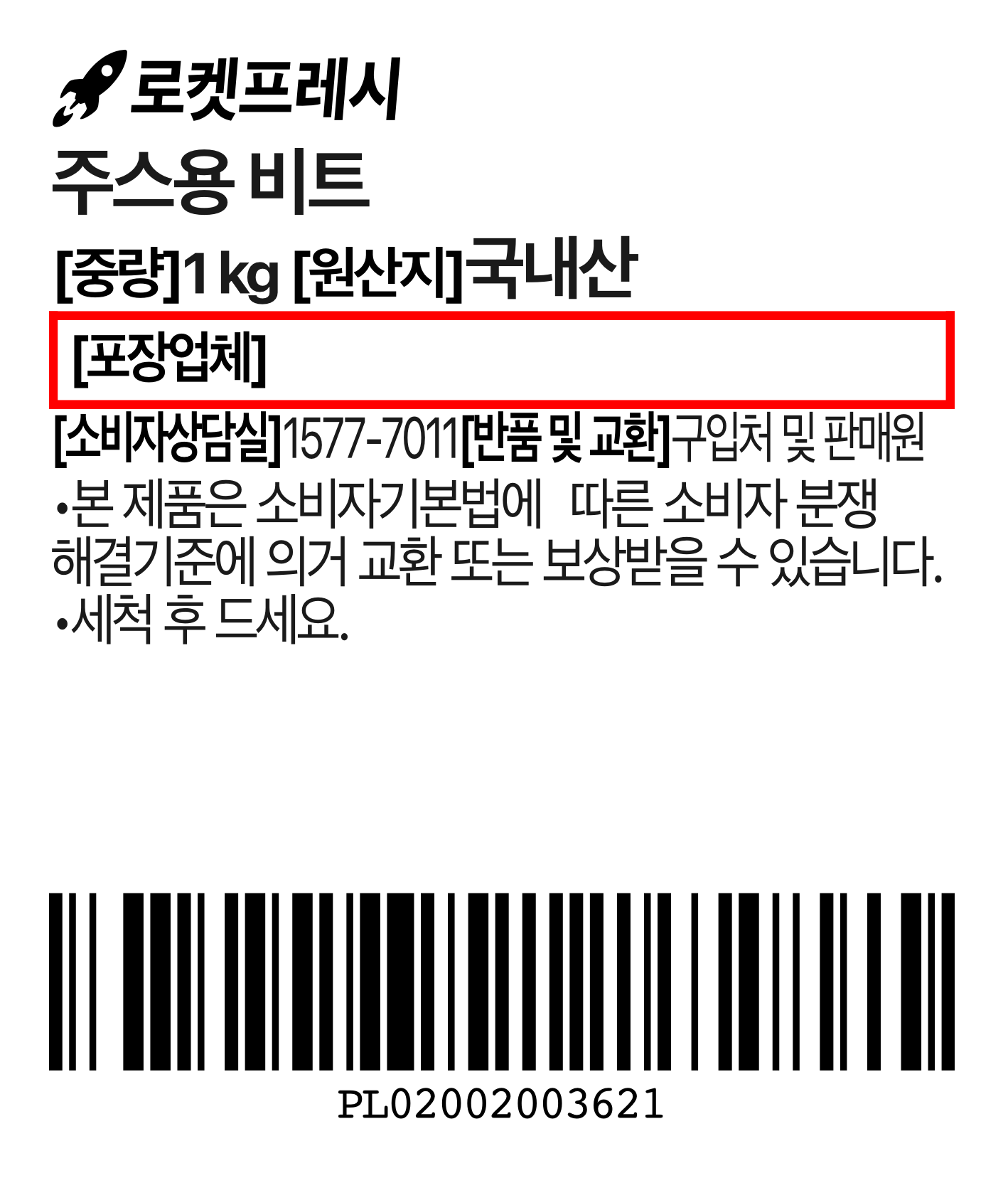 | 품목 또는 명칭 | 주스용 비트 | 포장단위별 내용물의 용량(중량),수량,크기 | 1kgx3개 |