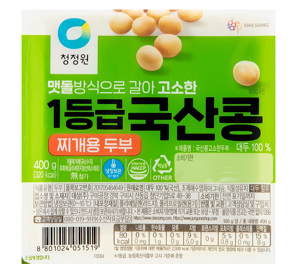 | 제품명 | 국산콩고소한두부 | 식품의 유형 | 두부 |