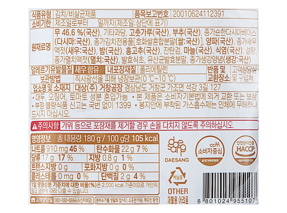 | 제품명 | 보쌈 무말랭이 | 식품의 유형 | 컨텐츠 참조 |