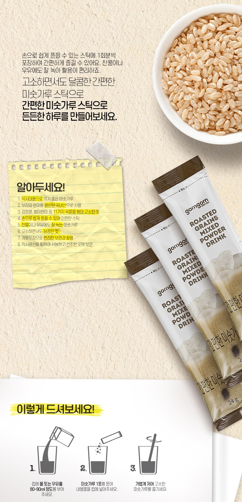 | 제품명 | 간편한 미숫가루 스틱 | 식품의 유형 | 즉석섭취식품 |