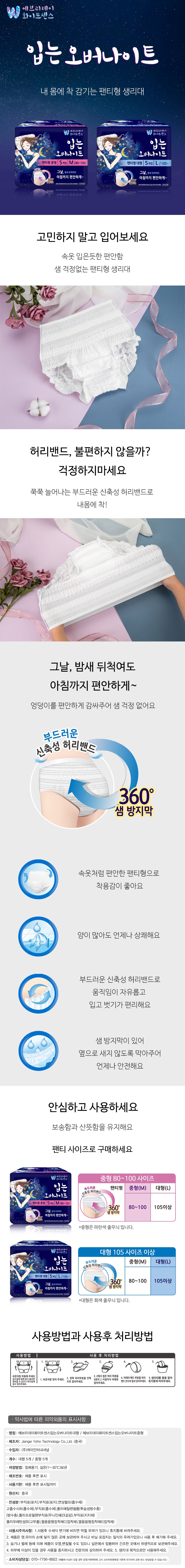 | 품명 및 모델명 | 에브리데이화이트센스입는오버나이트대형 | 인증/허가 사항 | 의약외품 |