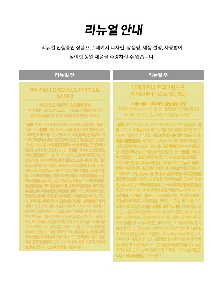 | 용량(중량) | 145ml | 제품 주요 사양 | 모든 피부용 |