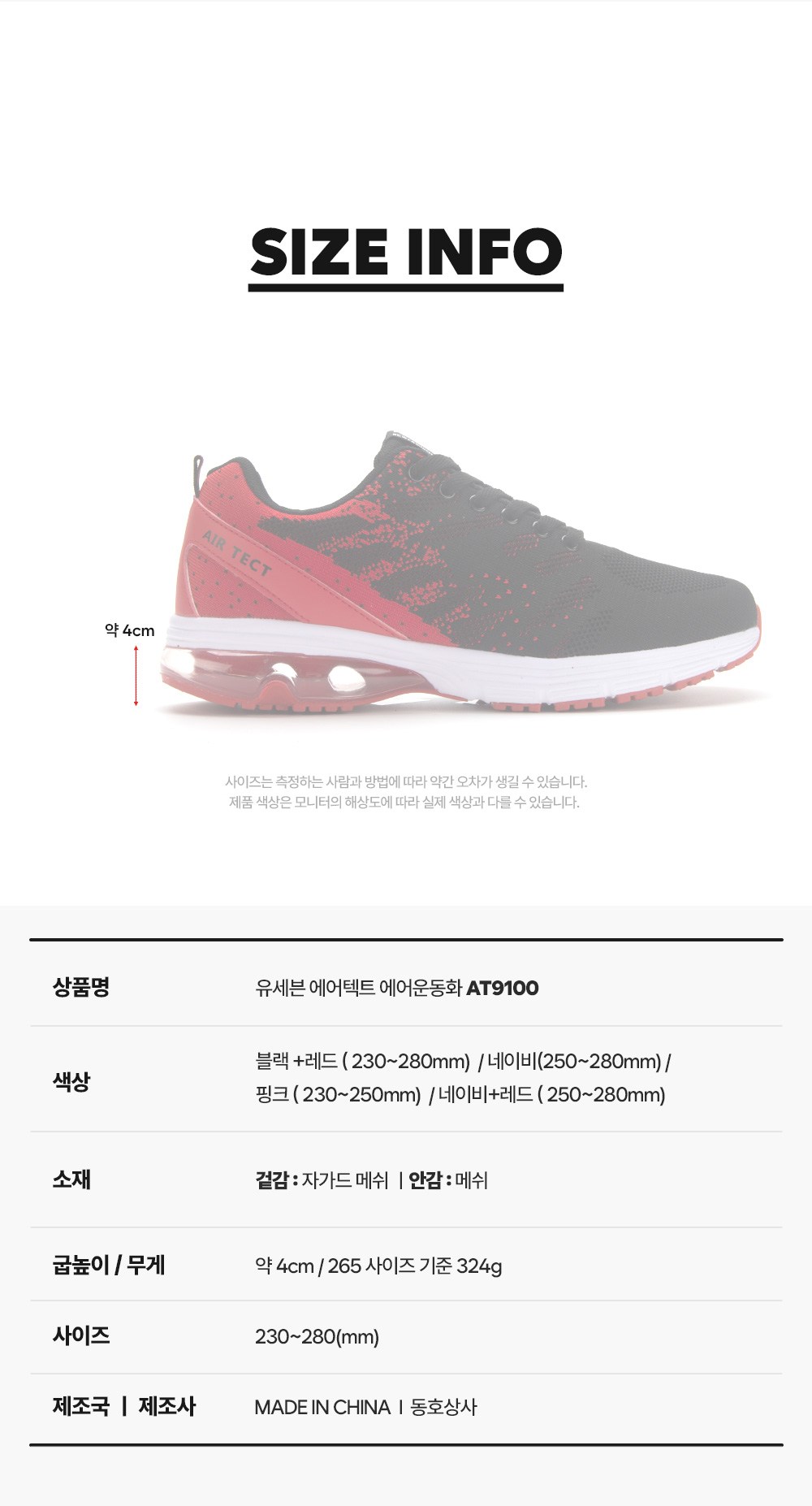 | 제품의 주소재(운동화인 경우에는 겉감,안감을 구분하여 표시) | 겉감: 자가드 메쉬 / 안감: 메쉬 | 색상 | 컨텐츠참조 |