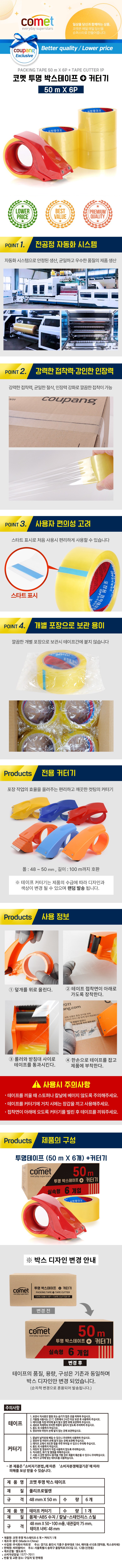 | 품명 및 모델명 | 코멧 투명 박스테이프 50 m * 48mm 6P + 커터기 세트 | 인증/허가 사항 | 해당사항없음 |