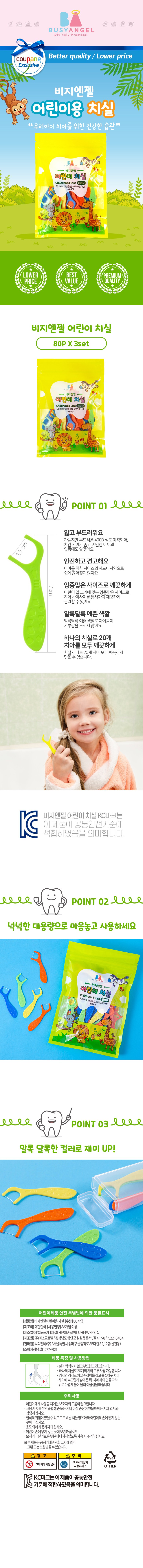 | 품명 및 모델명 | 비지엔젤 국내생산 어린이 치실 | KC 인증정보 | 유/KC마크 |