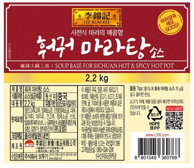 | 제품명 | 훠궈 마라탕 소스 | 식품의 유형 | 컨텐츠참조 |