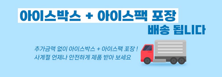 | 배송방법 | 신선/냉장/냉동 | 배송비 | 무료배송 · 도서산간 추가 배송비 - 제주 지역: 3,500원 - 도서산간 지역: 8,000원 |