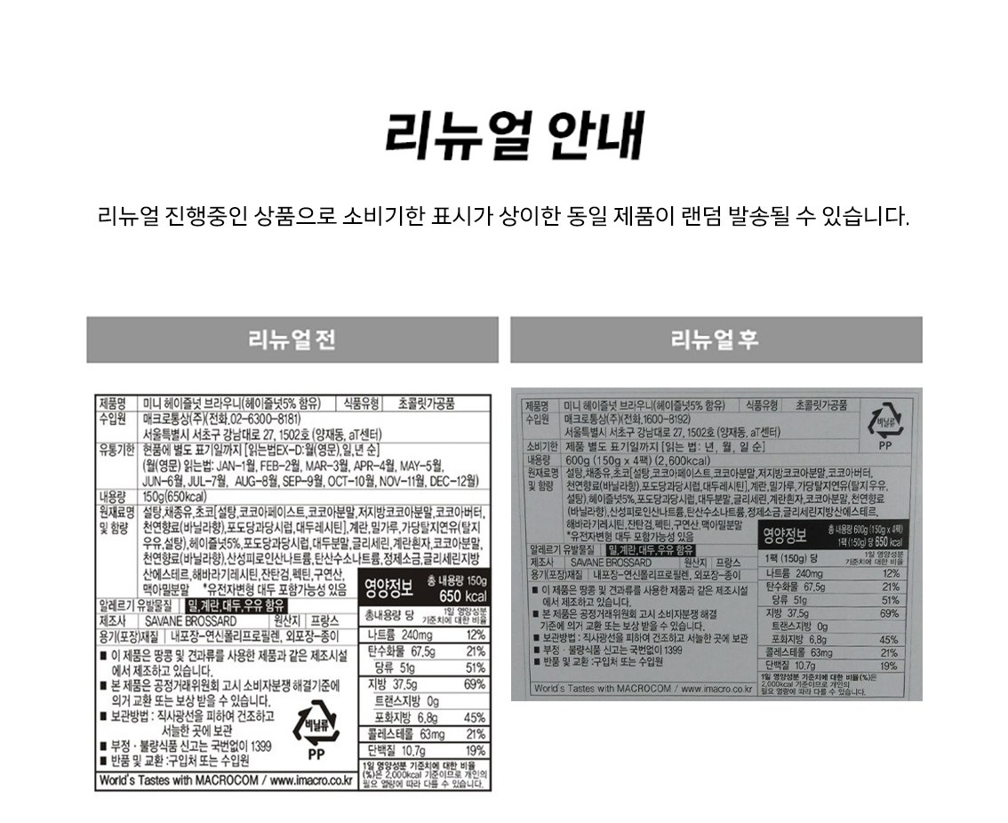 | 제품명 | 미니 헤이즐넛 브라우니(헤이즐넛 5%함유) | 식품의 유형 | 초콜릿가공품 |