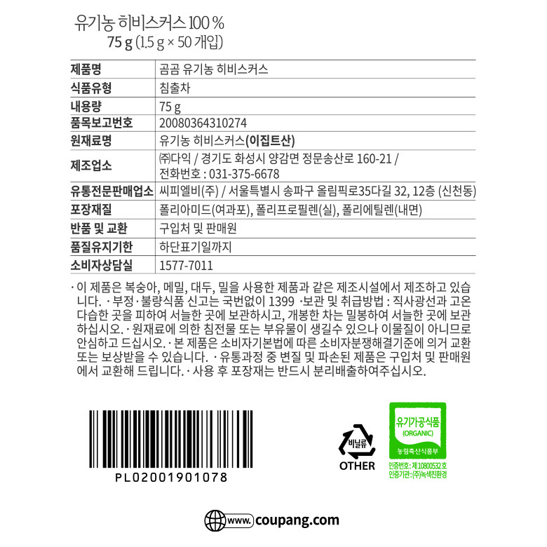 - 쿠팡상품번호: 191599063 - 19013173218
