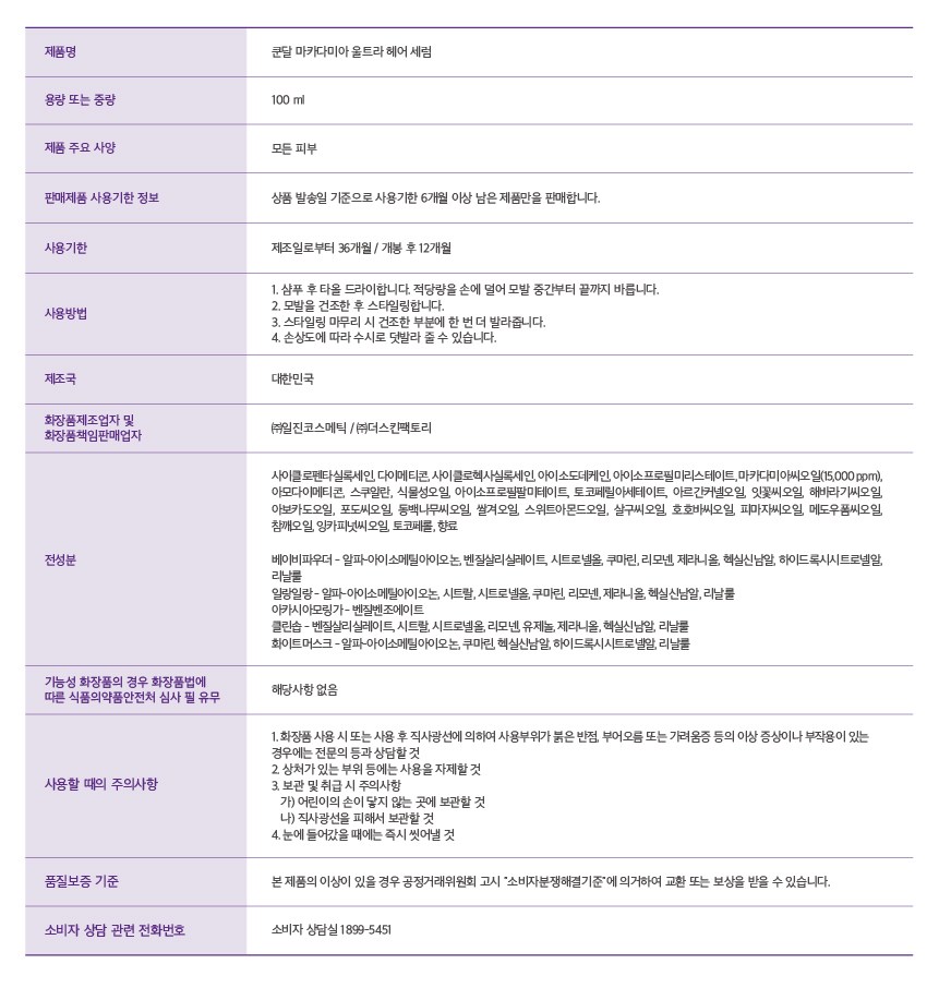 | 용량(중량) | 100ml | 제품 주요 사양 | 모든모발용 |