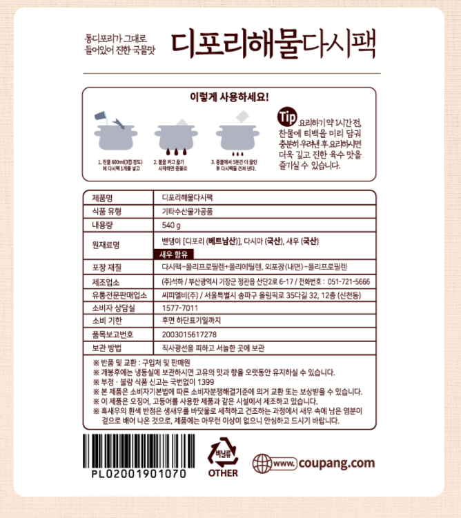 - 다시팩 주재료: 디포리
