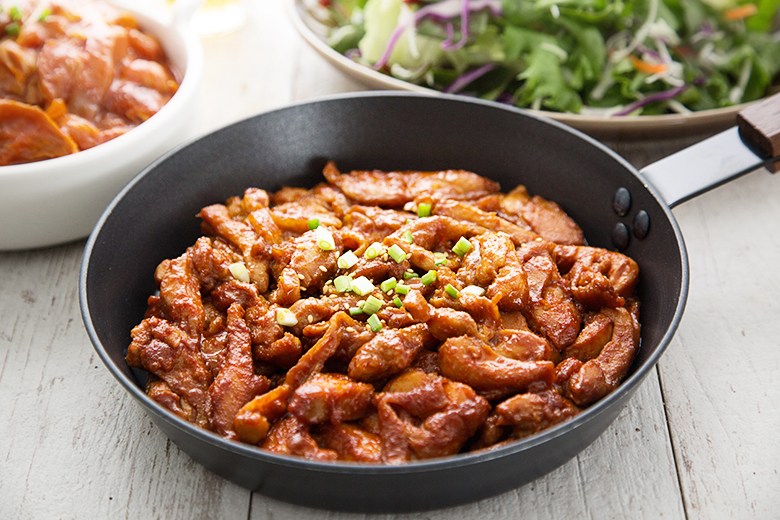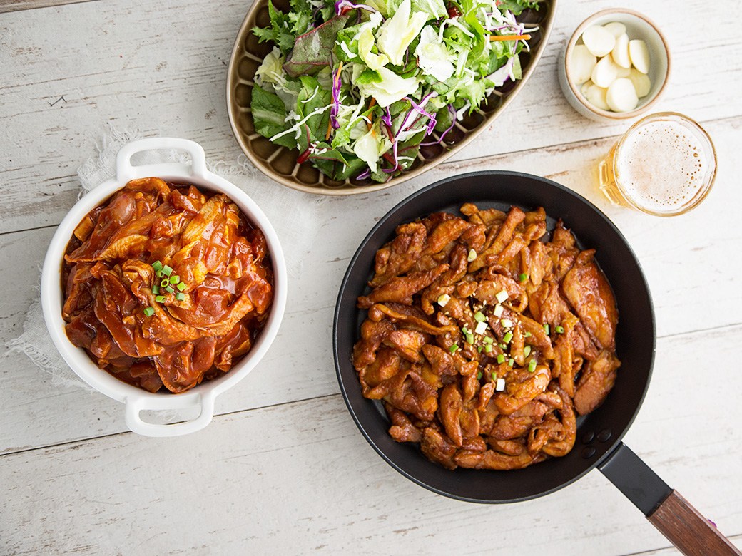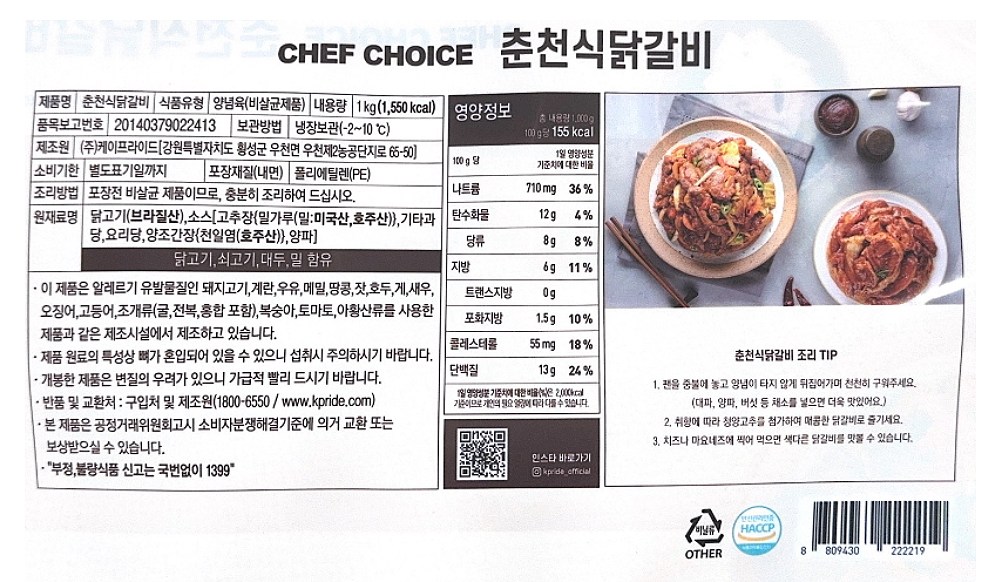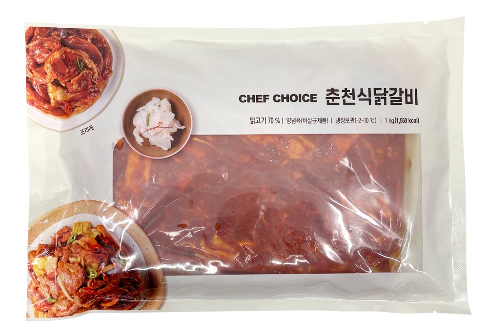 셰프초이스의 춘천식 닭갈비는 부드러운 닭고기에 매콤하면서도 달큼한 양념을 버무려, 따로 양념할 필요 없이 볶기만 하면 완성할 수 있어요. 고구마, 양배추, 양파, 깻잎, 떡 등 다양한 재료를 준비해 함께 볶으면 더욱 풍성하고 맛깔나게 즐길 수 있답니다.