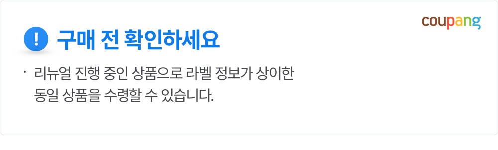 | 교환/반품 신청 기준일 | ㆍ단순변심에 의한 로켓배송 상품의 교환/반품은 제품 수령 후 30일 이내까지, 교환/반품 제한사항에 해당하지 않는 경우에만 가능 (교환/반품 비용 고객부담) ㆍ상품의 내용이 표시·광고의 내용과 다른 경우에는 상품을 수령한 날부터 3개월 이내, 그 사실을 안 날 또는 알 수 있었던 날부터 |