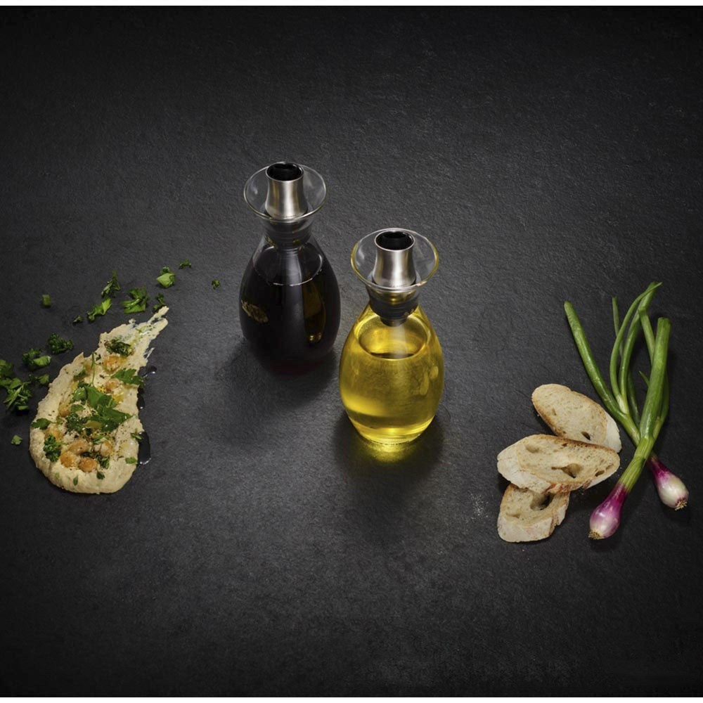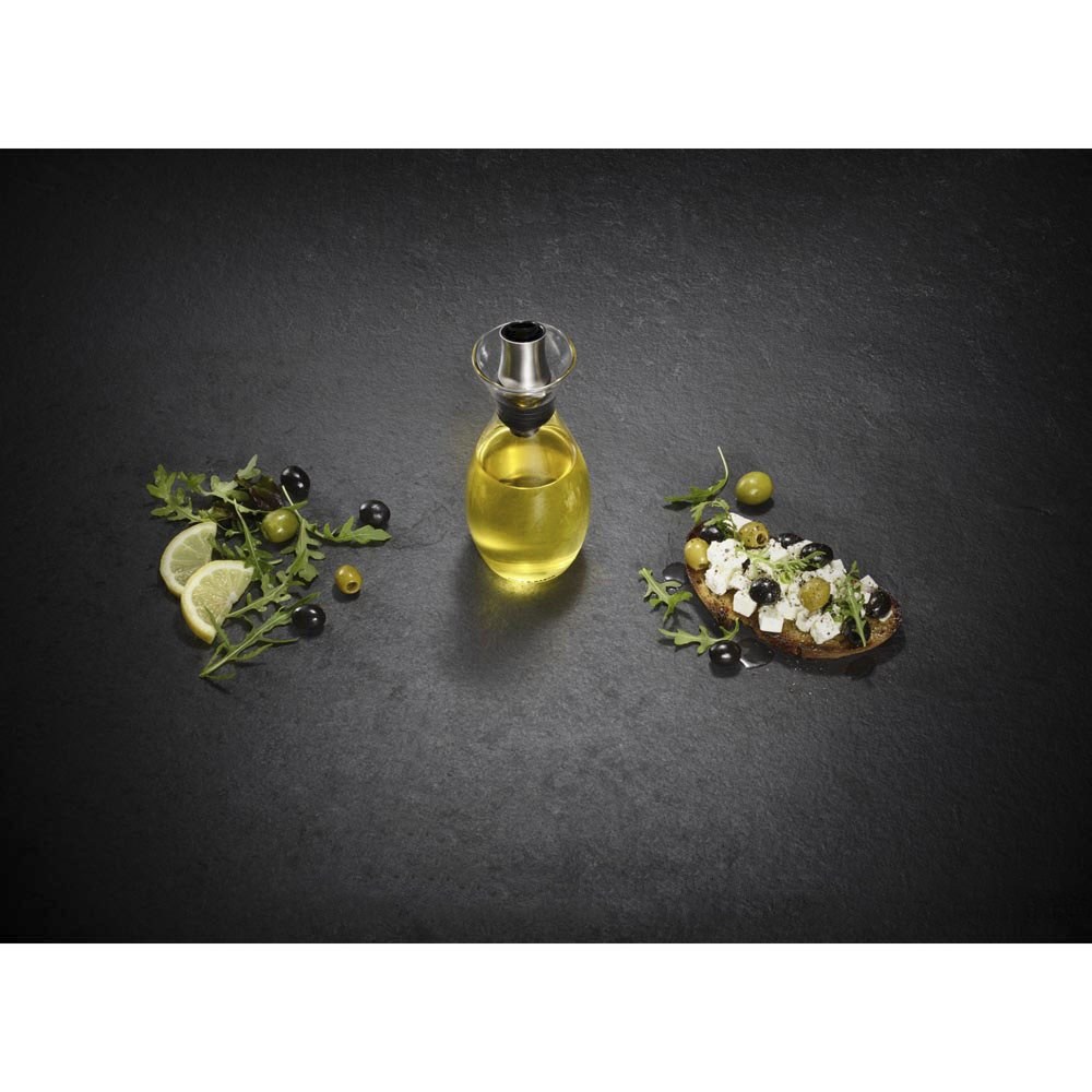 핸드메이드 붕규산 유리 재질의 오일 병입니다. 오일이나 식초를 담아 붓거나 뿌려먹기 좋습니다. 주둥이는 스테인리스 스틸 재질로, 전체적으로 우수한 내구성을 지닌 제품입니다. 용량 369.7ml입니다.