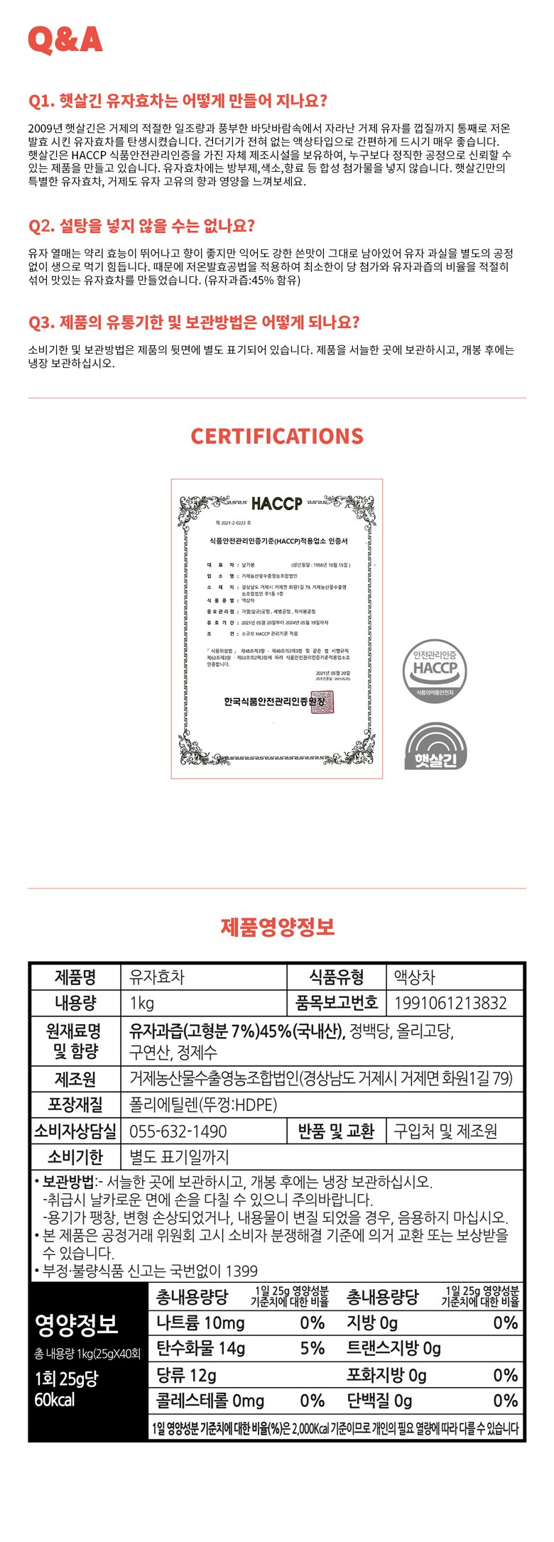 | 포장단위별 내용물의 용량(중량), 수량 | 1kg x 1개입 | 원재료명 및 함량 | 컨텐츠 참조 |