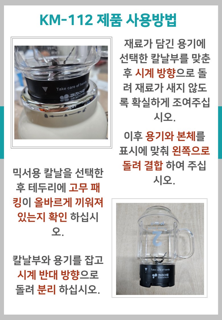 | 품명 및 모델명 | 키친아트 레트로 텀블러 미니 믹서기 KM-112 | KC 인증정보 | HU071583-18003I, R-R-cxs-SBL-1708 |