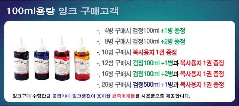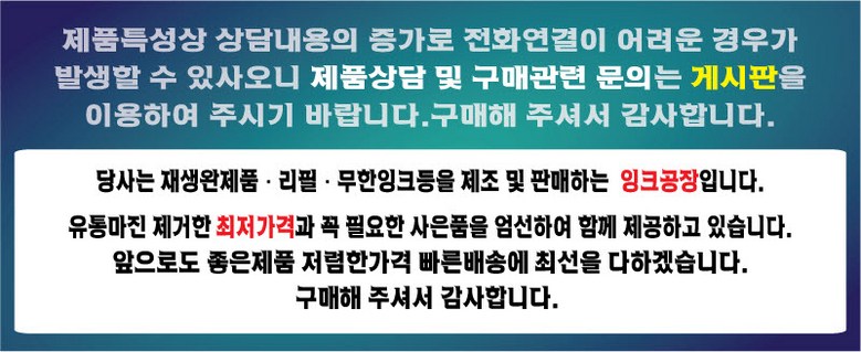| 품명 및 모델명 | 잉크/무한잉크/프린터용잉크 | 인증/허가 사항 | 없음 |