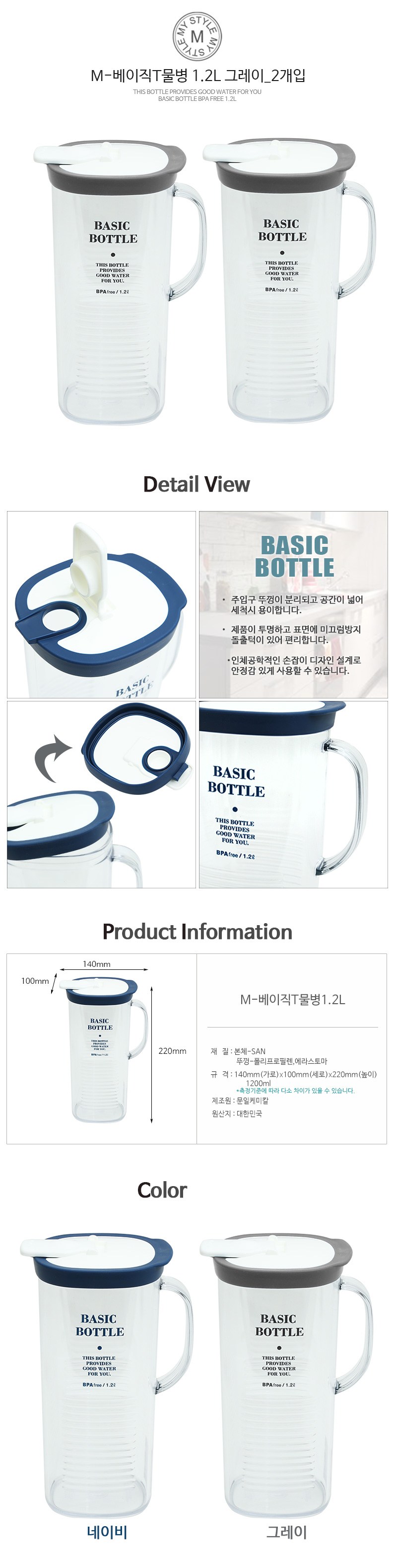 | 품명 및 모델명 | 베이직T물병 | 재질 | 컨텐츠 참조 |