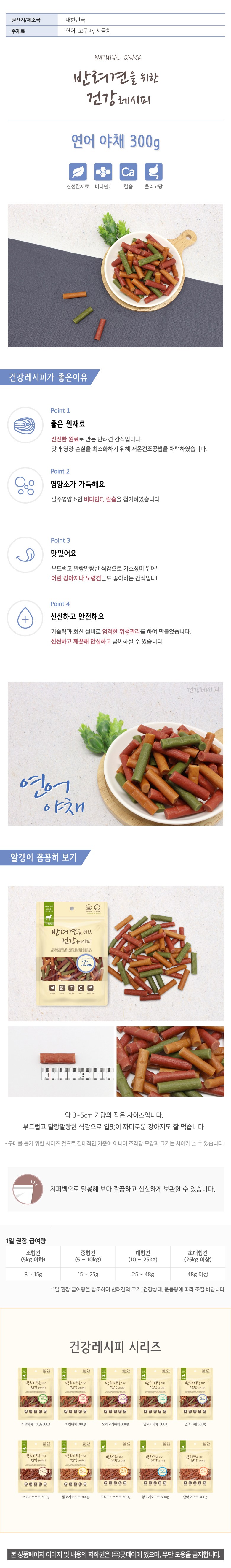 | 품명 및 모델명 | 건강레시피 연어야채 300g | 인증/허가 사항 | 사료관리법에 따른 성분등록번호 : 컨텐츠 참조 |