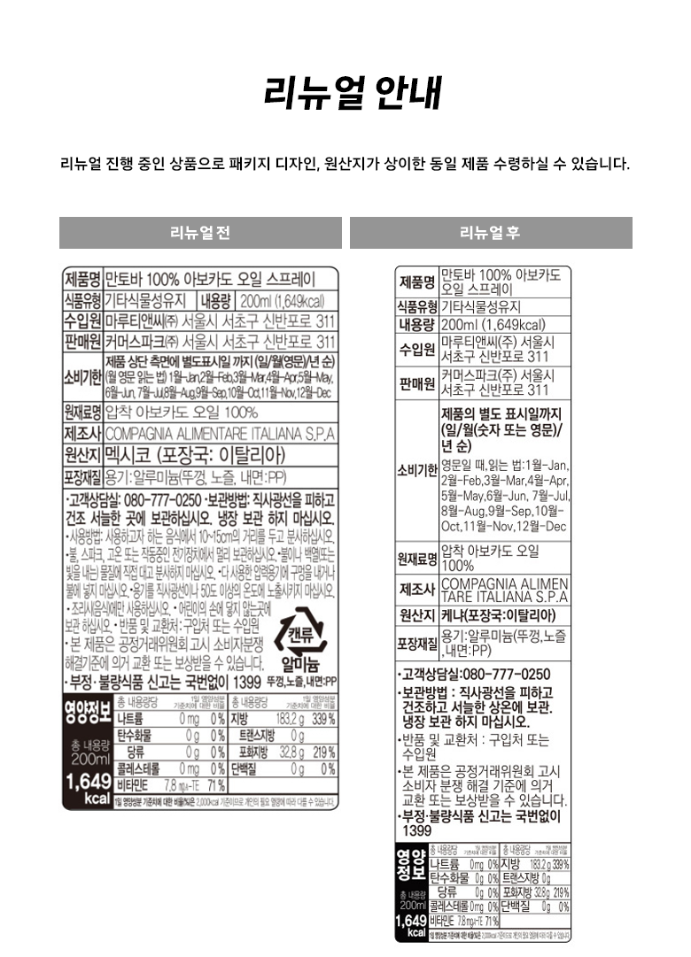 | 포장단위별 내용물의 용량(중량), 수량 | 200ml, 2개 | 원재료명 및 함량 | 컨텐츠 참조 |