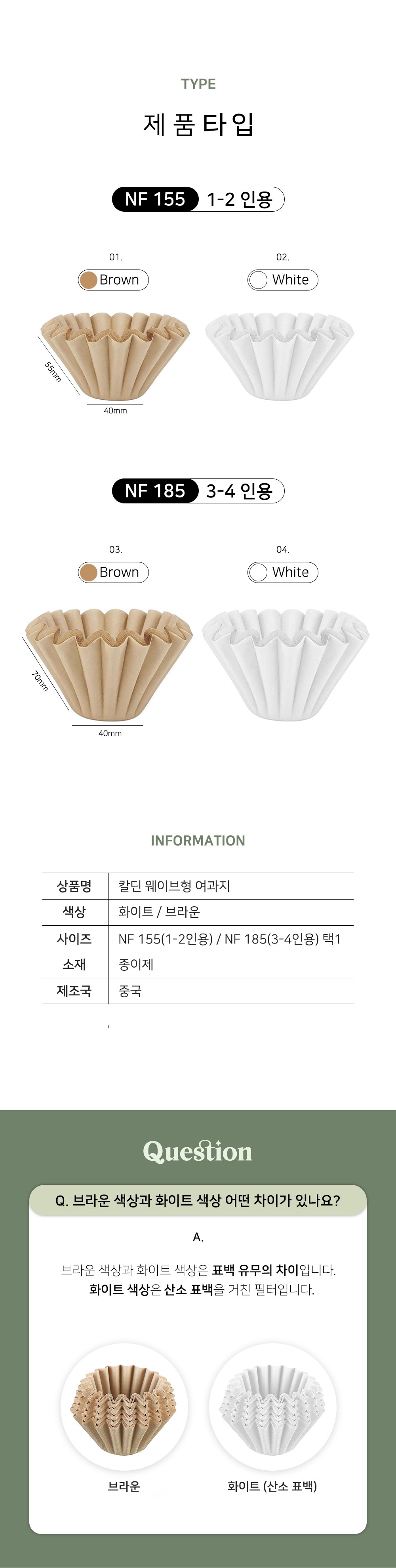 | 품명 및 모델명 | 칼딘 웨이브 핸드드립 여과지 필터 브라운 155mm | 재질 | 컨텐츠 참조 |