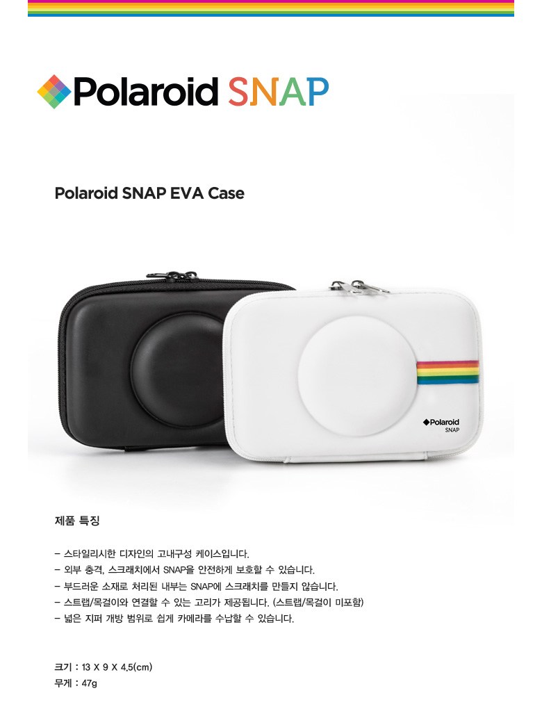| 품명 및 모델명 | Polaroid SNAP EVA Case | 인증/허가 사항 | 해당없음 |