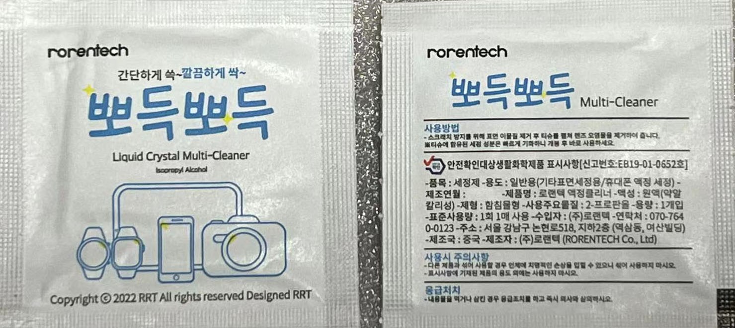 | 품명 및 모델명 | 로랜텍 강화유리 휴대폰 액정 보호필름 세트 | 인증/허가 사항 | 본품: 해당없음 | 클리너: EB19-01-0652 |