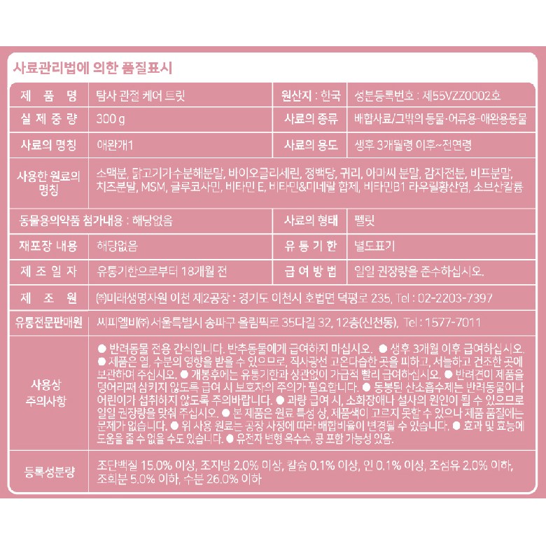 | 품명 및 모델명 | 탐사 관절 케어 트릿 300g | 인증사항 | 해당없음 |