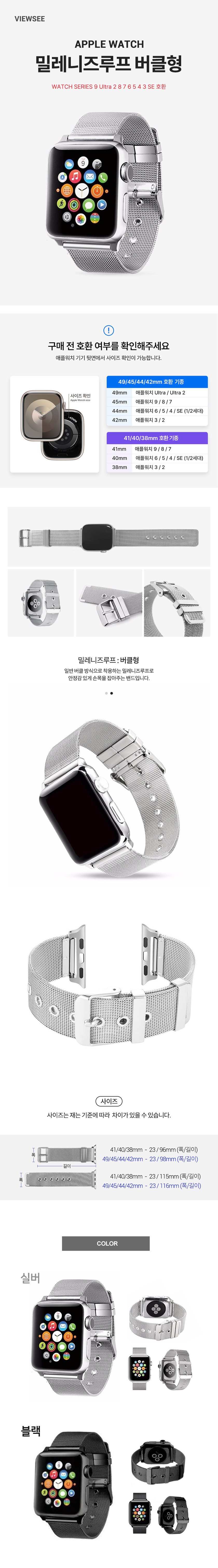 | 품명 및 모델명 | 뷰씨 애플워치 밀레니즈루프 버클형 밴드 49/45/44/42mm | 인증/허가 사항 | 해당없음 |